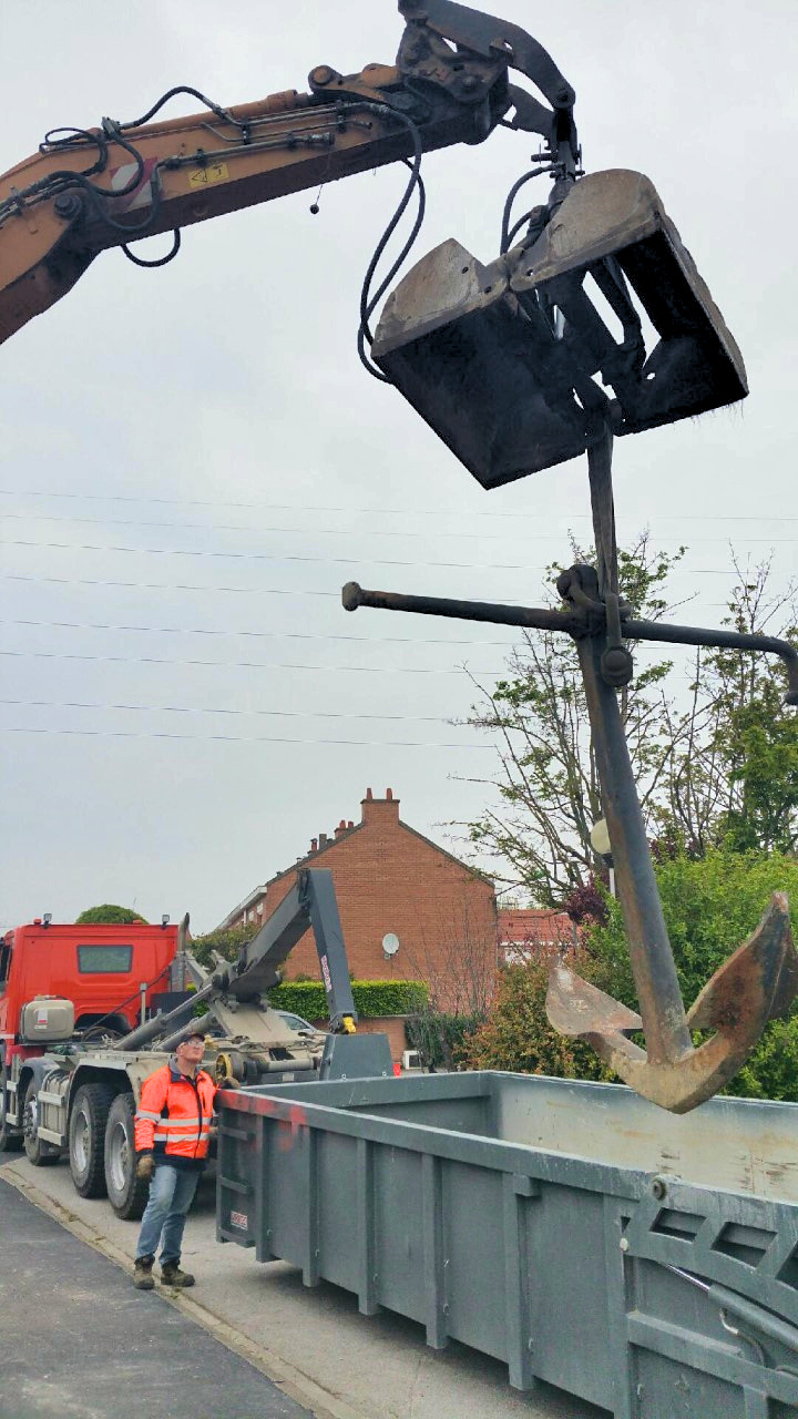 Dans ma tournée régulière des chantiers en cours, je vous fais partager l’arrivée d’une ancre de bateau ( véritable ) élément de décoration extérieure pour le square des Marronniers en cours de réalisation actuellement.