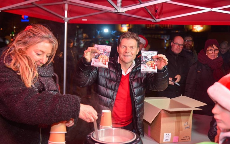Pour accompagner la descente du Père Noël ce vendredi soir et lancer le Week-end de festivités de Noël : j’ai distribué les fameux cookies du maire et Barbara son bon chocolat chaud.