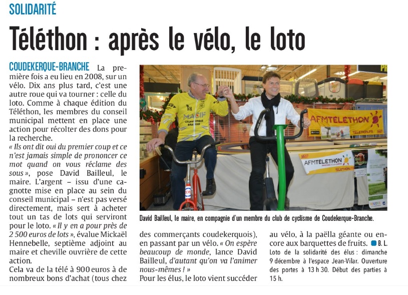 N’oubliez pas dimanche après midi à L’espace Jean Vilar grand loto de la solidarité par les élus ( nous avons acheté tous les lots sur nos deniers personnels afin que l’ensemble des ventes des cartes de loto soient reversées intégralement au Téléthon ).