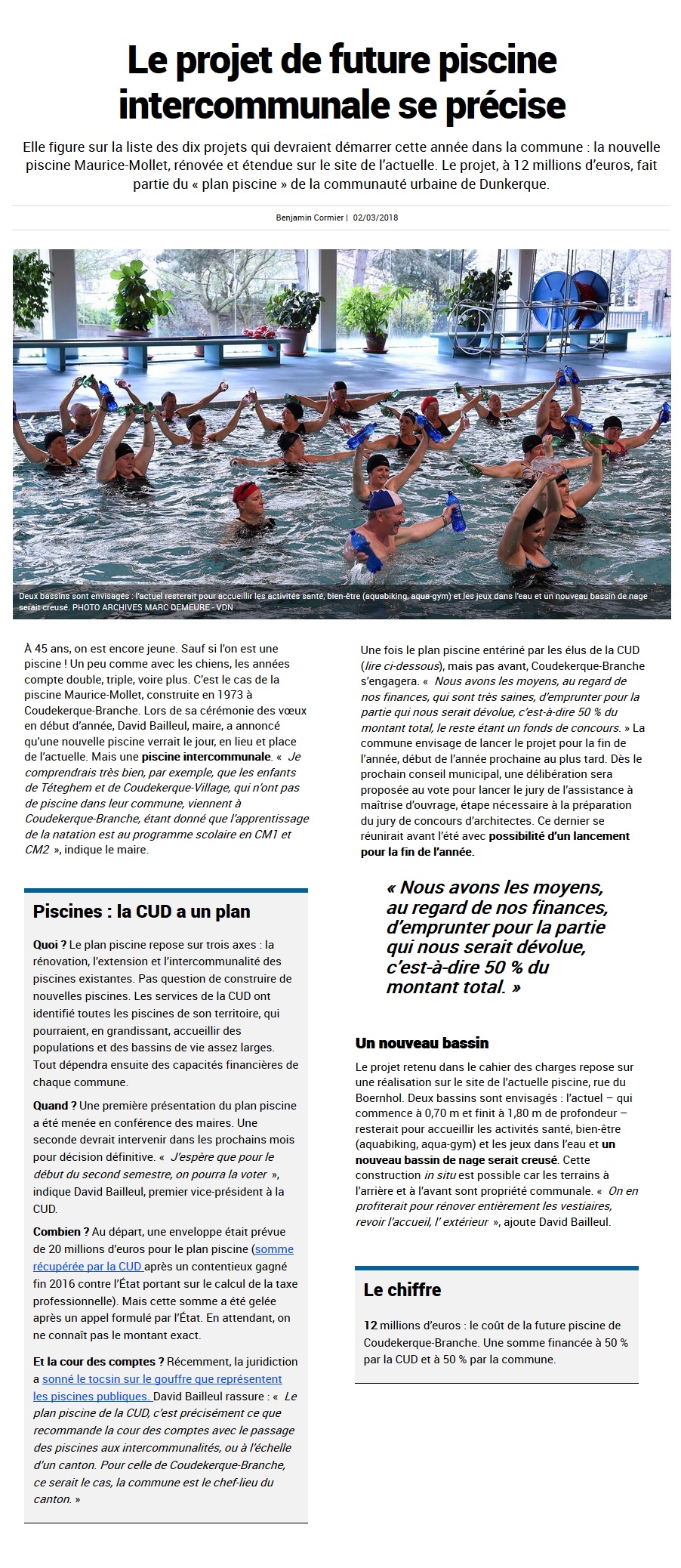 Publié le: 8 mars, 2018Catégories : Dans la presseVues: 2359Mots clés: article, chantier, Communauté Urbaine de Dunkerque, coudekerque-branche, coudekerquois, cud, david bailleul, élus, enfants, habitants, maire, mairie, nageur, piscine, plan piscine, réaction, rénovation, rue du Boernhol, solidarité, soutien, sport, travaux, ville, Voix du Nord