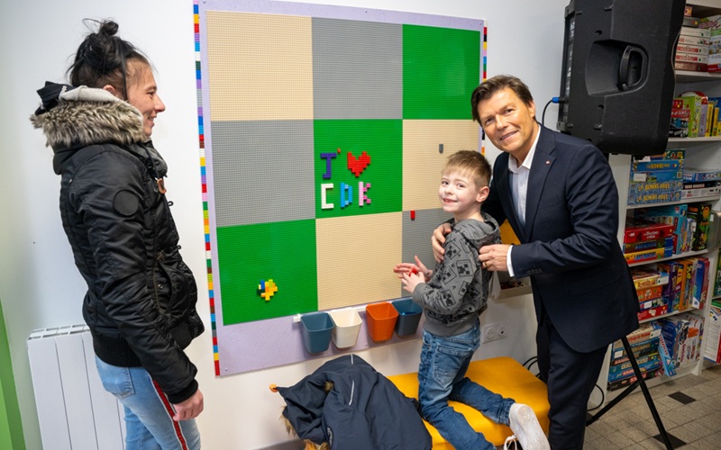 On ne s’ennuie jamais à Coudekerque-Branche et ce grand plateau mural pour construire des réalisations en Lego plaît beaucoup aux enfants… et encore plus à mon camarade, quand je vois ce qu’il a réalisé.