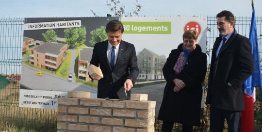 Le 17 février 2018 – David Bailleul lors de la pose de la première pierre du nouveau lotissement route de Bourbourg dans le Vieux Coudekerque.