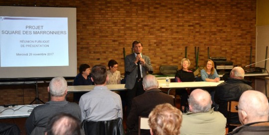 Le 29 novembre 2017 – David Bailleul lors de la réunion publique concernant le futur square des marronniers à la place de l’ancienne piscine dans le quartier du Petit Steendam.