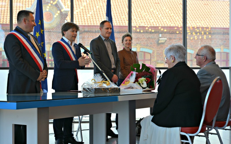 Le 18 avril 2015 - David Bailleul lors d'un samedi très chargé en manifestations et cérémonies où il a célébré des noces d'or à l'Hôtel de Ville de Coudekerque-Branche.