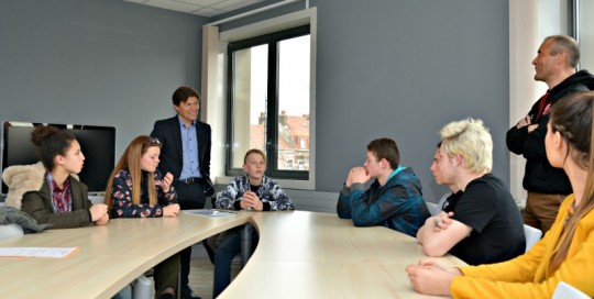 David Bailleul2019-03-14T12:41:17+01:00Le 12 avril 2018 – David Bailleul lors de sa rencontre avec les collégiens de l’établissement Boris Vian à Coudekerque-Branche où de nombreux élèves ont proposé des idées et activités sur la ville.