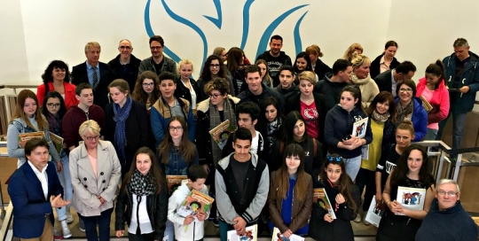 Le 20 avril 2015 – David Bailleul lors de la réception en mairie des collégiens du collège du Westhoek dans le cadre d’un échange européen « comenius ».