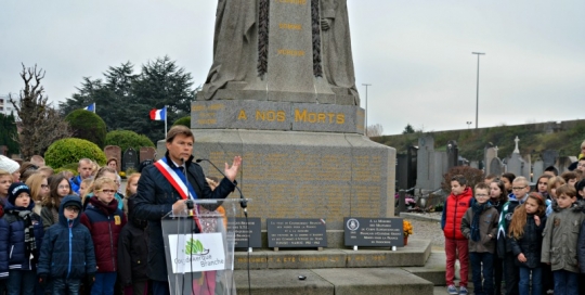 Le 11 novembre 2014 – David Bailleul lors des commémorations du centenaire de la première guerre mondiale à Coudekerque-Branche où de nombreux écoliers ont participé.