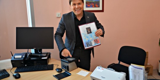 Le 17 mars 2017 – David Bailleul devant de la machine biométrique en mairie de Coudekerque-Branche qui permet la création de passeports et nouvelle carte d’identité.