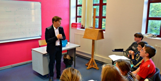 Le 30 septembre 2015 – David Bailleul lors de son passage à l’école de musique fraîchement déménagée à l’espace Aragon de Coudekerque-Branche.