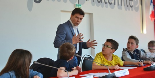 Le 18 avril 2018 – David Bailleul lors de la séance plénière du conseil municipal des jeunes en mairie de Coudekerque-Branche où les jeunes élus ont proposé de nombreuses nouvelles idées.