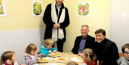 Le 26 janvier 2017 – David Bailleul lors de son passage à la cantine de l’école maternelle des Kakernesches, école pilote sur la ville pour la restauration scolaire.