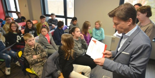 David Bailleul2019-03-14T12:41:17+01:00Le 12 avril 2018 – David Bailleul lors de sa rencontre avec les collégiens de l’établissement Boris Vian à Coudekerque-Branche où de nombreux élèves ont proposé des idées et activités sur la ville.