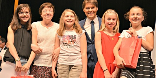 Le 25 juin 2016 – David Bailleul lors de la remise des dictionnaires aux élèves de CM2 à l’espace Jean Vilar de Coudekerque-Branche où un grand nombre d’élèves ont participé.