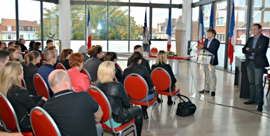 Le 21 septembre 2015 – David Bailleul lors de la cérémonie de remise des cadeaux aux bacheliers de l’année 2015 à l’hôtel de ville de Coudekerque-Branche.