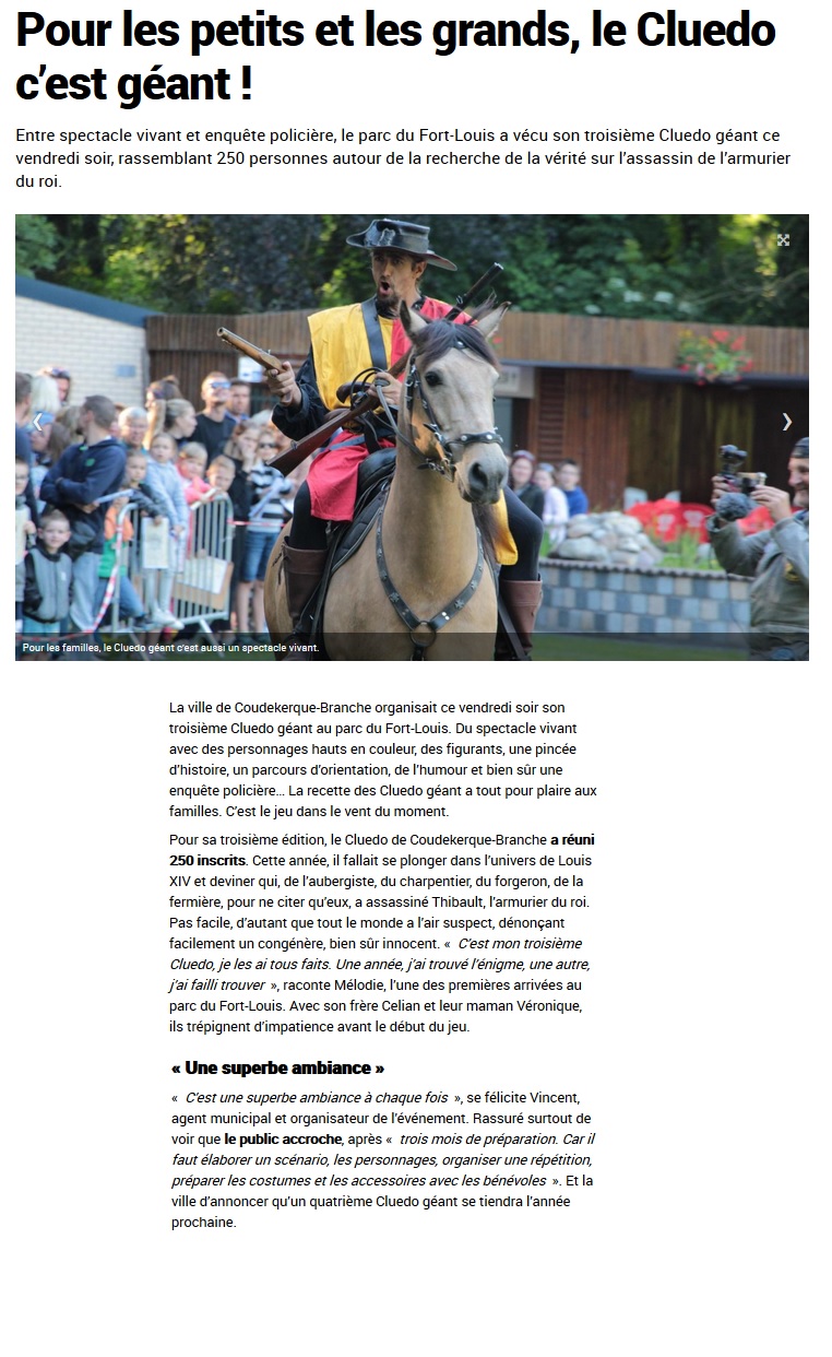 Plus de 250 participants au Cluedo géant, deuxième animation pour démarrer l’été après le grand rassemblement de voitures anciennes il y a 15 jours qui avait attiré plusieurs milliers de personnes.
