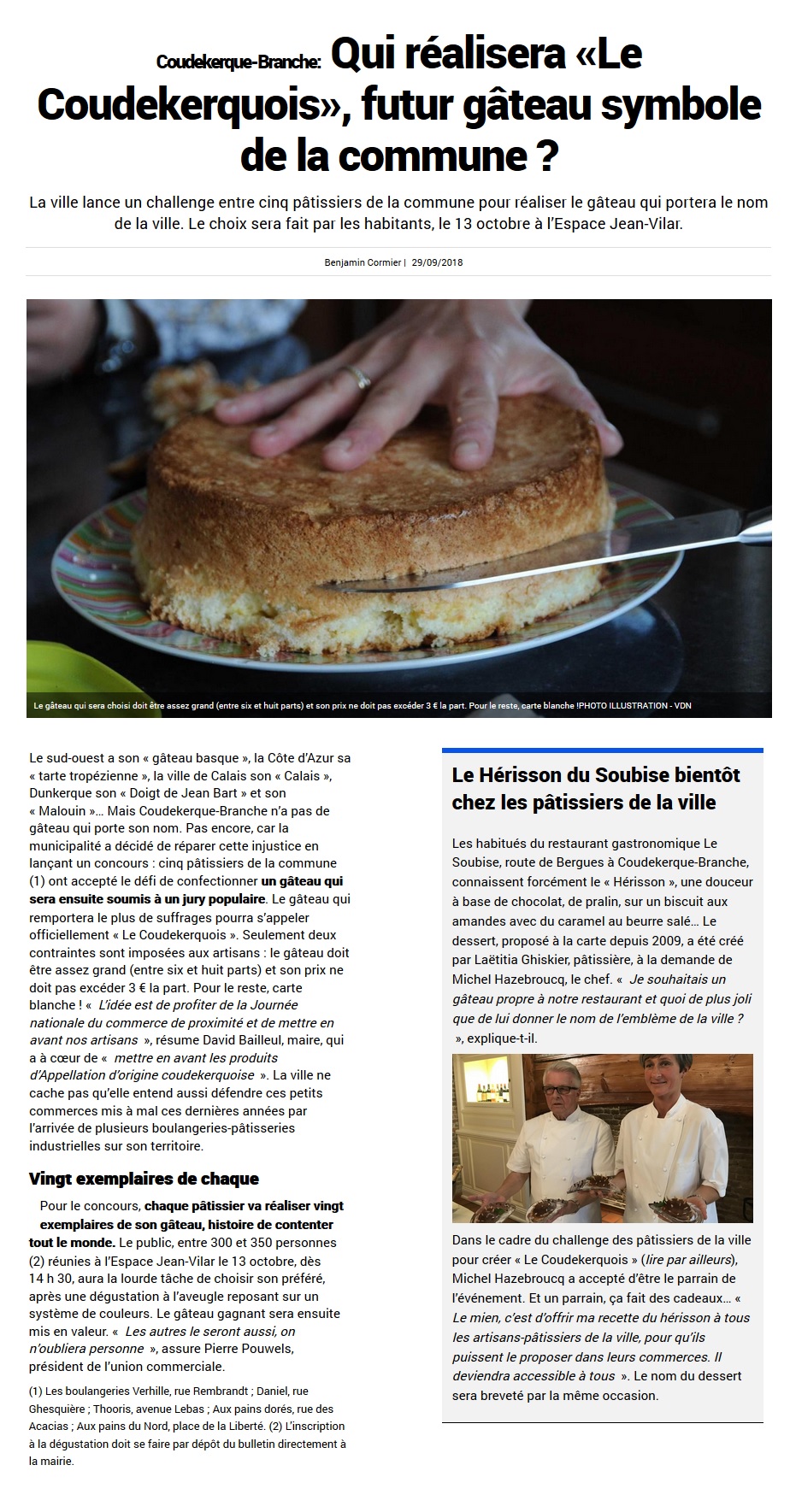 Alors qui pour réaliser le futur gâteau de la ville ? ( lisez l’article ci joint ) mais surtout qui pour le déguster ? On a besoin de vous pour choisir ! Inscrivez-vous via le magazine municipal ou le site internet de la ville pour venir le samedi 13 octobre déguster tous les gâteaux en compétition.