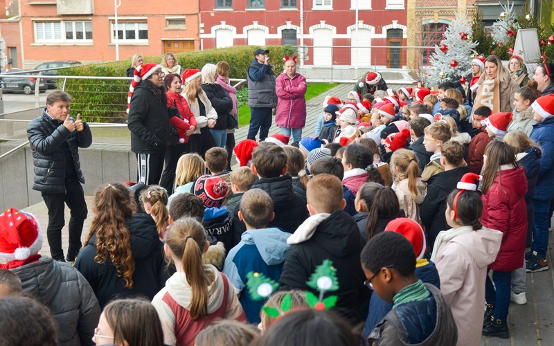 Ce mercredi après-midi : une heure de bonheur avec tous les enfants des centres aérés du mercredi, venus avec leurs boules de Noël décorées par leurs soins afin de les accrocher aux branches de la forêt de sapins à l’entrée de Jean-Vilar.